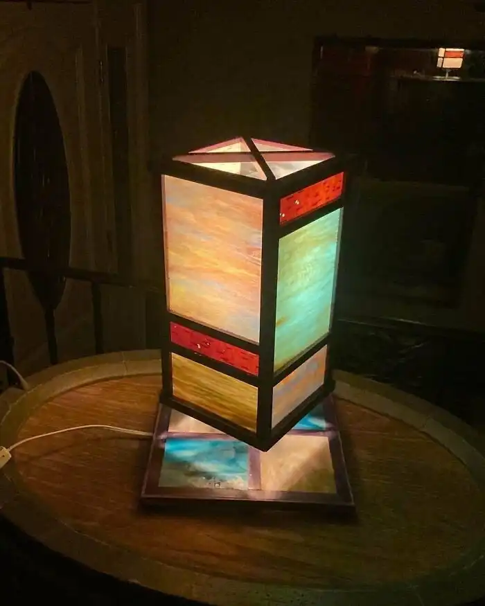 24. "Мой парень сделал для меня эту лампу! Цветное стекло, дерево и береза"