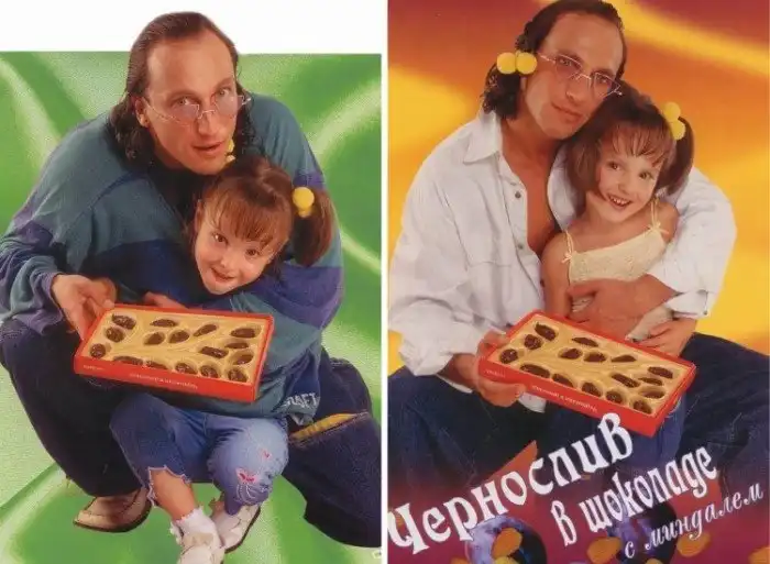 Дмитрий Нагиев, рекламирующий конфеты «Чернослив в шоколаде», 1990-е годы