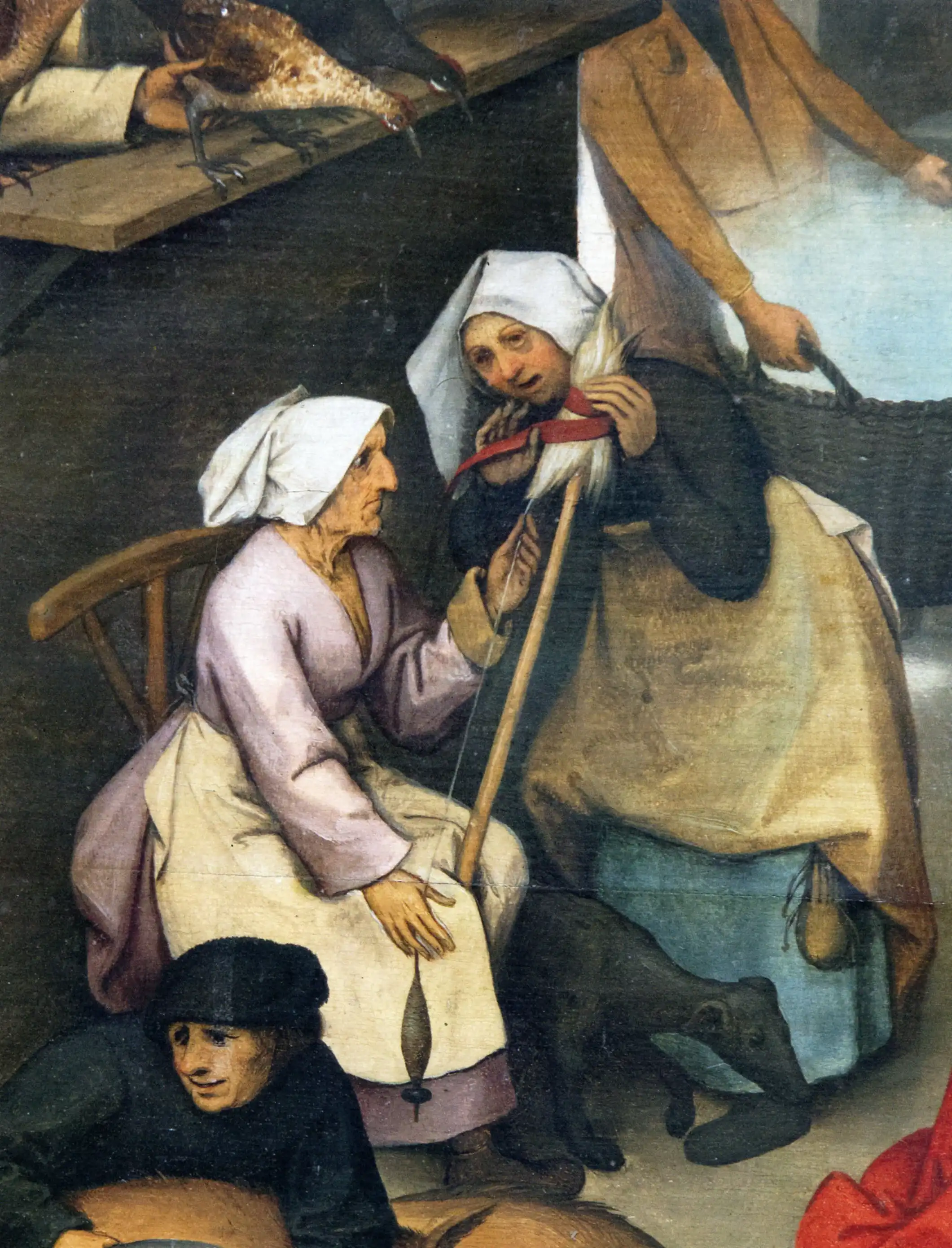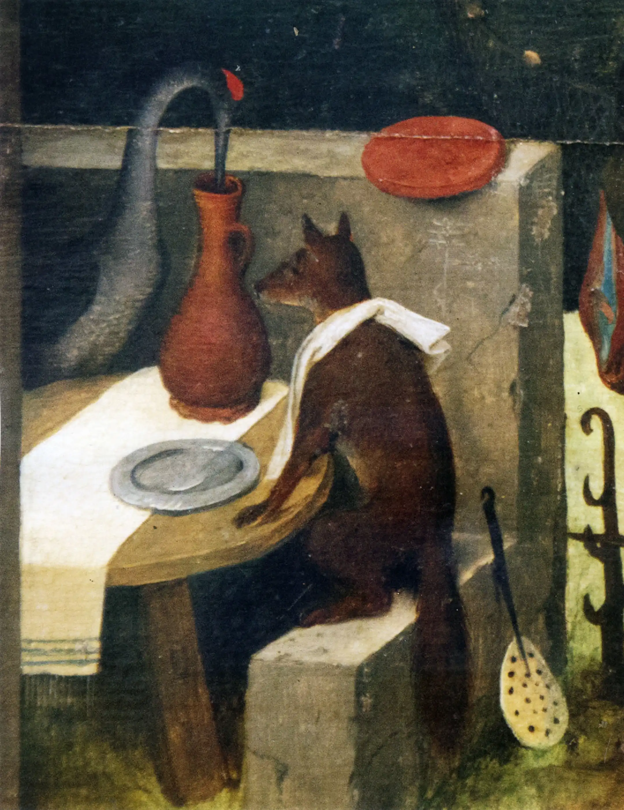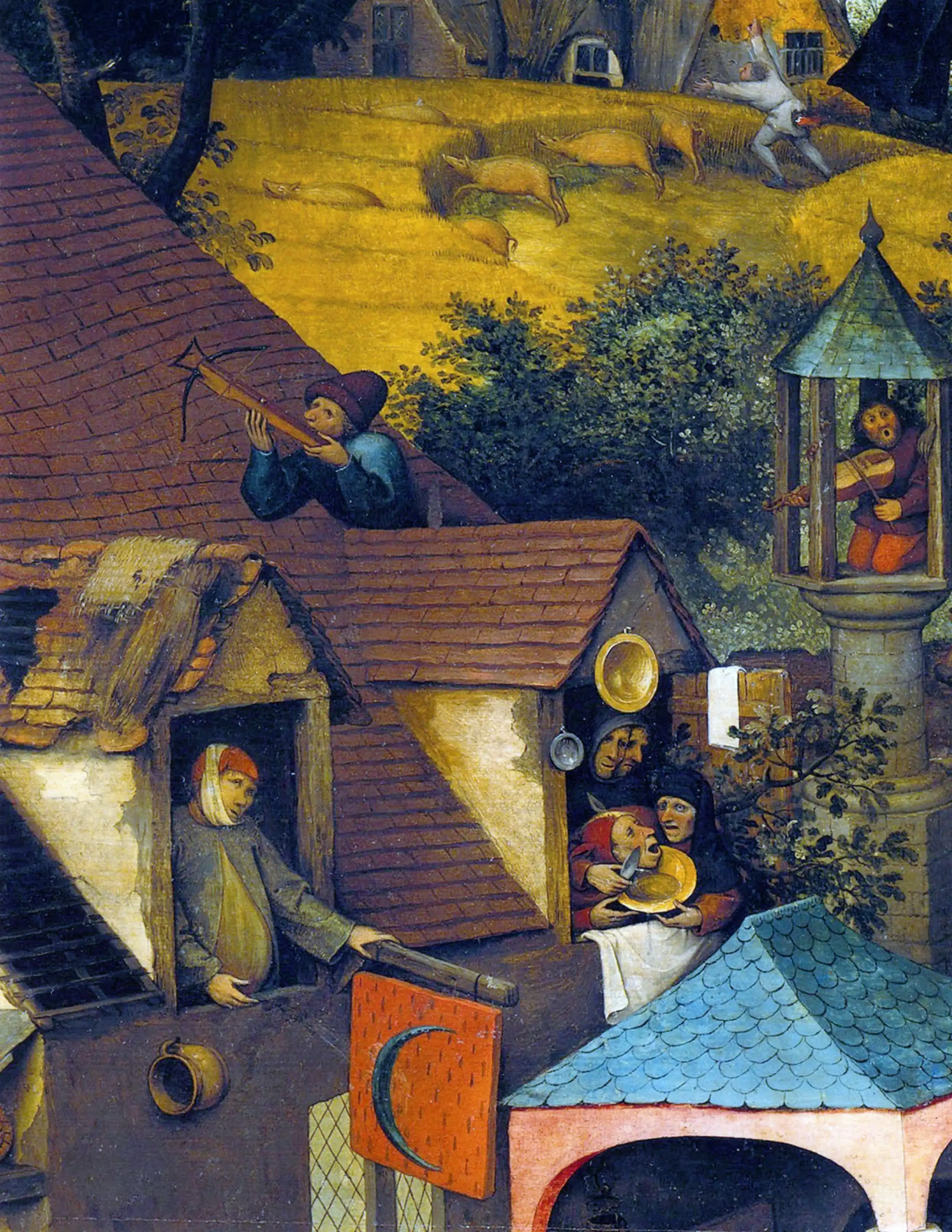 Нидерландские пословицы кажутся каким-то выходом в другую реальность. Возможно, художник, открывая нам греховную жизнь своих современников, написал полотно… в назидание. Вековая мудрость пословиц, проиллюстрированных “обратным образом”, создают атмосферу жизни, где правит добро. Смотрите, что с вами стало – говорит художник. Но вернитесь к праведности и безгрешности, будьте мудрыми – и жизнь изменится…