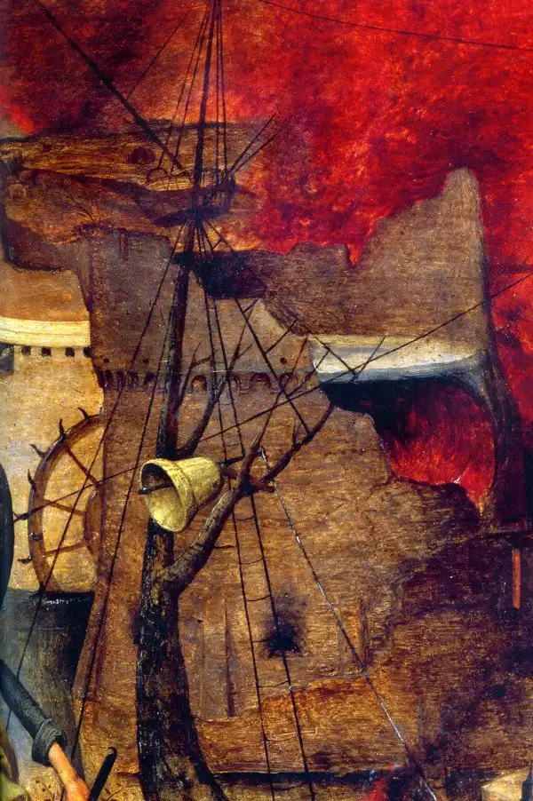 В ряду картин, тематически перекликающихся друг с другом, - знаменитая картина Триумф смерти. Внушает ужас это вселенское торжество смерти, это трагическое наступление “глобального конца”, в котором нет ни проблеска надежды на то, что можно выйти “на берег” из этого потока безумия и… хотя бы перевести дух.