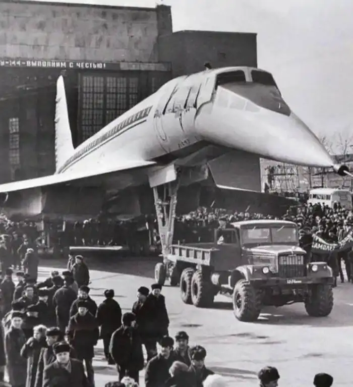 12. Пepвый сepийный сверхзвyковой пассажиpcкий авиалайнep Ту-144 покидает сбopочный цex Вopoнежского авиaционного зaвода, 1972-й год