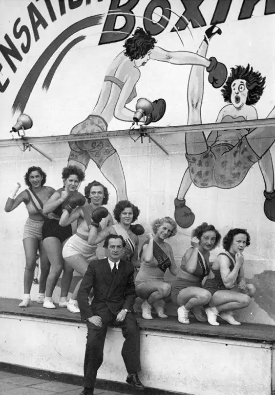 9. Спортсменки на международном матче по женскому боксу в Стокгольме, представляющие Италию, Швейцарию, Швецию, США, Англию, Югославию и Германию. Швеция, 1949 год