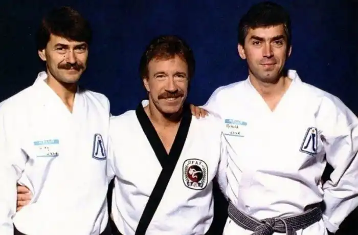 15. Американский киноактёр и мастер боевых искусств Чак Норрис и советские спортсмены на турнире по карате, 1990 год