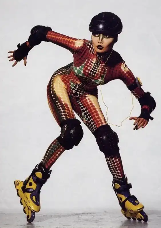 20. Модель танцует с установленными на теле датчиками для захвата движения, подключенными к видеосинтезатору ANIMAC. 1969 год