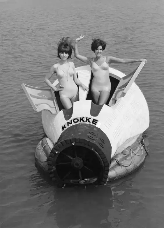 26. Модели в макете космической капсулы на морском курорте Кнокке. Бельгия, 1966 год