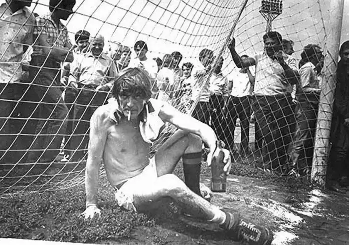 Фотография с товарищеского матча сборной куйбышевских журналистов против команды театра имени Ленинского комсомола «Авось» 28 июня 1984 года