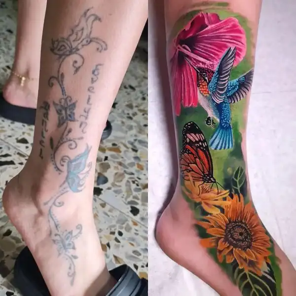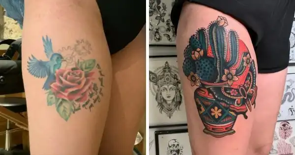 Многие противники татуировок убеждают любят повторять: "Остановись, подумай, это ведь на всю жизнь!". Однако, нет в мире ничего вечного. Это же относится и к татуировкам. Со временем они теряют цвет и даже форму, если работал неопытный мастер. Поэтому многие время от времени "освежают" свои тату. А если татуировка стала "ошибкой юности", то решаются на болезненное сведение. Но есть и третий вариант. Старое тату всегда можно перекрыть. Герои этих фото выбрали именно такой вариант.