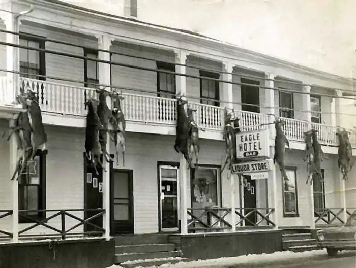 Отель Eagle в Даунсвилле, штат Нью–Йорк, во время сезона охоты на оленей. 1960–е.