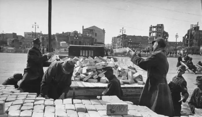 Немецкие военнопленные на восстановление в Сталинграде. 1947 год