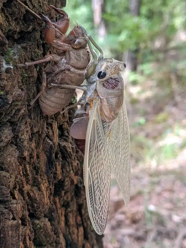 Цикада, которая избавляется от своего экзоскелета, после 17 лет жизни под землей