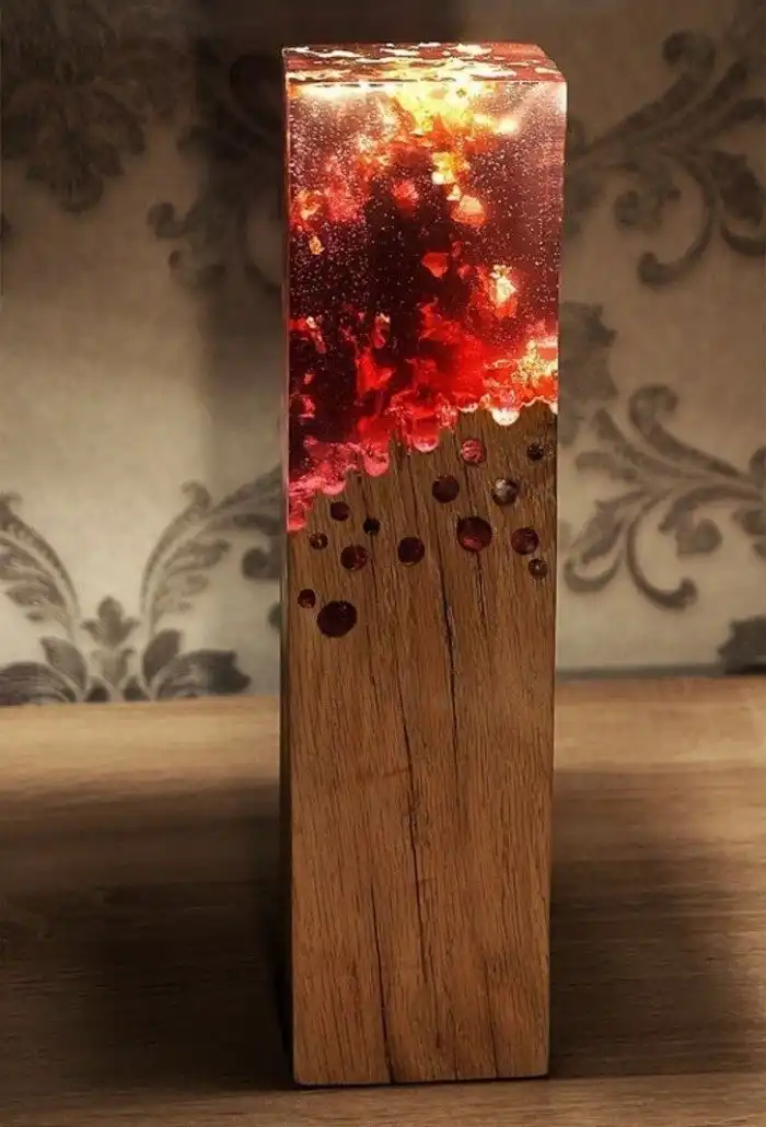 Деревянный светильник, имитирующий горящее полено