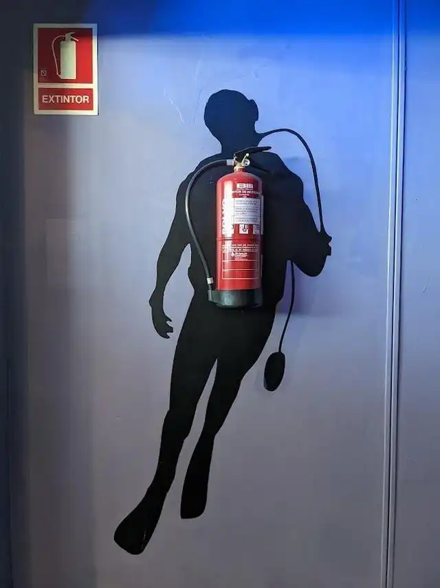 Дизайнер оригинально оформил место хранения огнетушителя в океанариуме
