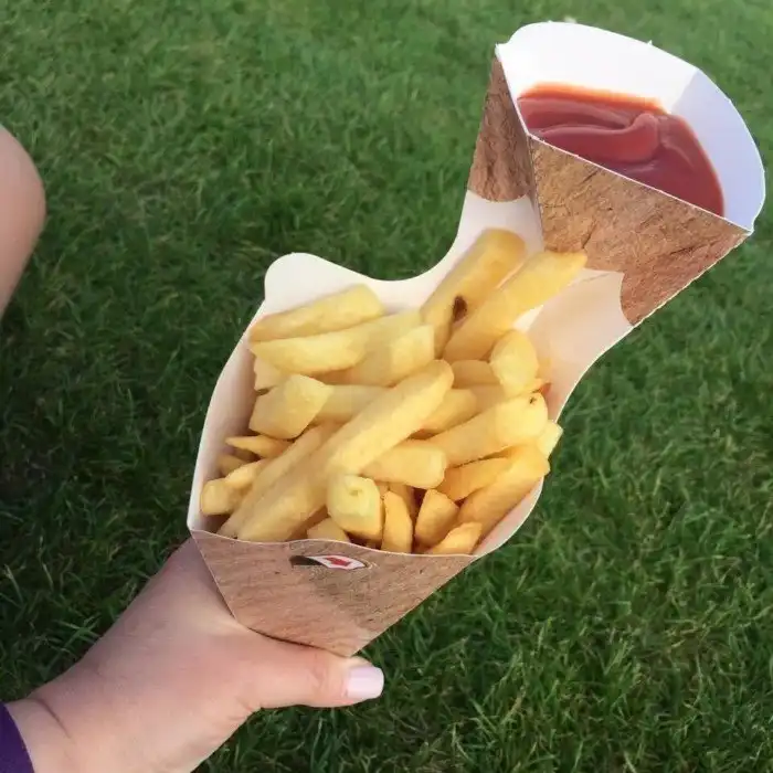В коробке с картошкой фри есть отдельный карман, куда можно налить кетчуп