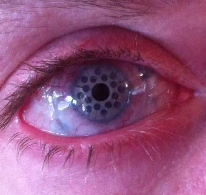 Это глаз после кератопротезирования: хирургическая процедура, при которой больная роговица заменяется искусственной