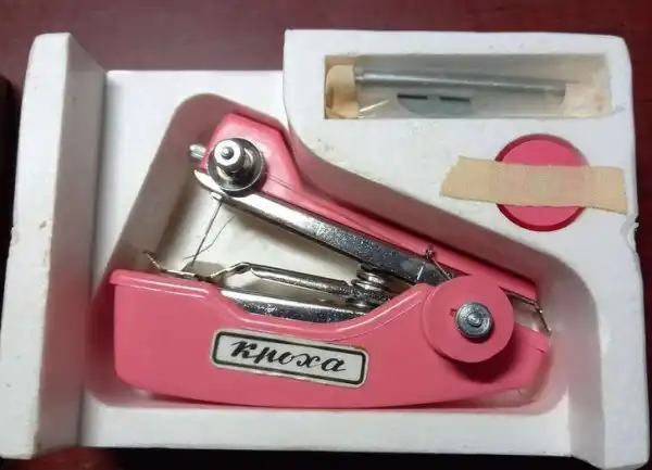 Ручная швейная машинка. Работает же она по одному принципу со степлером: одно нажатие — один стежок.
