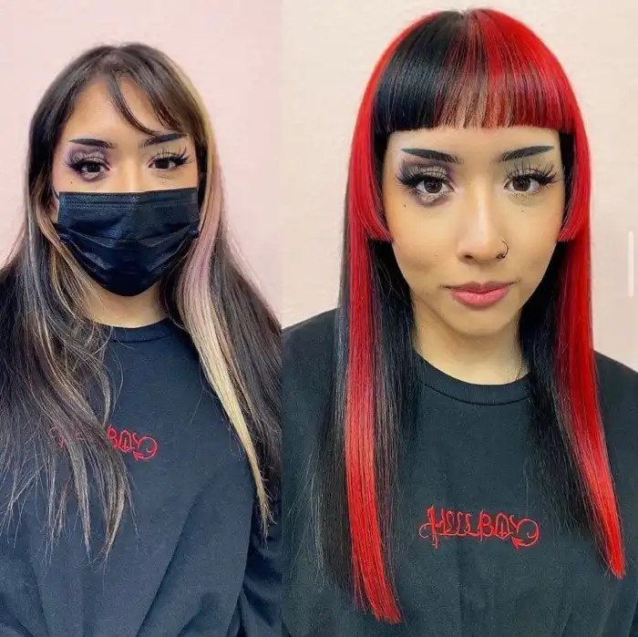 Подобные яркие акценты — отличное решение для тех, кто устал от естественного цвета волос, но не готов к слишком радикальным переменам.