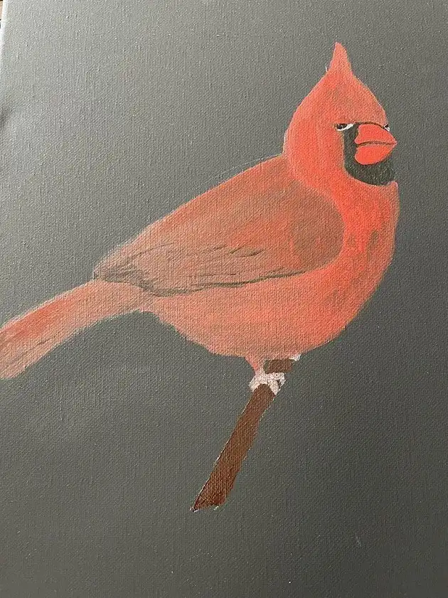 Эта гордая птица – красный кардинал кажется не очень-то довольна тем, что ее нарисовали