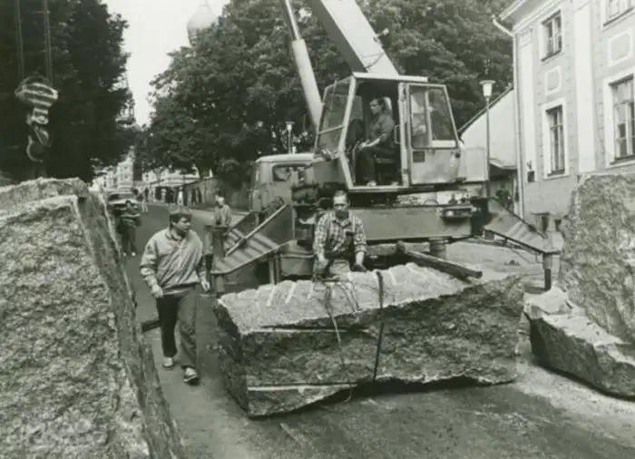 18. Эстонцы возводят баррикады для защиты Тоомпеа от советских войск 21 августа 1991 год
