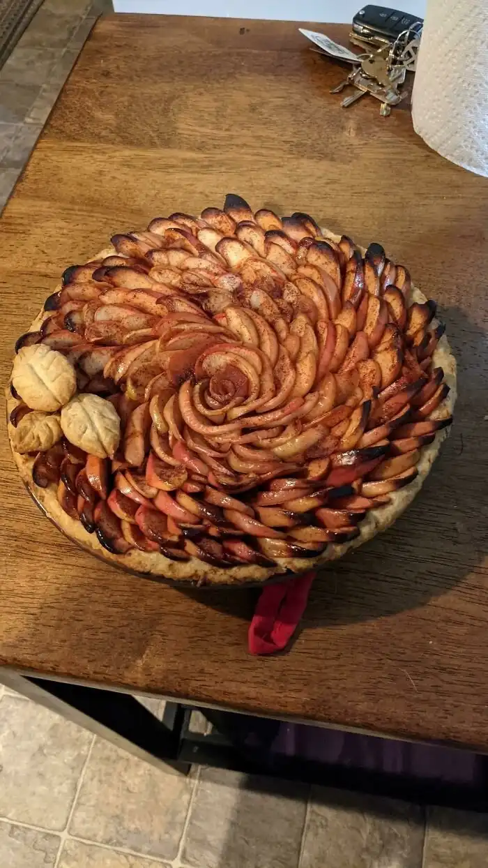 9. "Мой жених приготовил этот невероятный яблочный пирог в виде розы. Он такой же вкусный, каким кажется, и я просто должна была его показать"