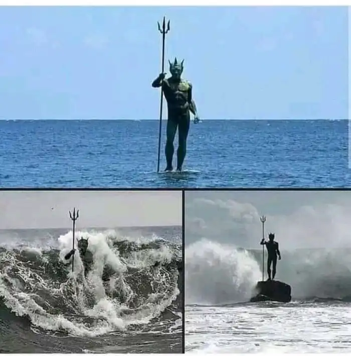 Статуя Нептуна (Посейдона) на пляже Меленара в Лас-Пальмасе, Испания
