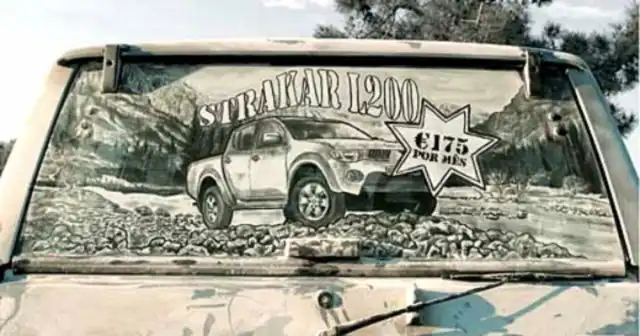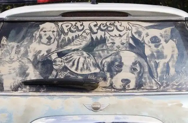 Талантливые люди, порой, действительно могут удивить. Как и автор этих, не побоюсь этого слова, шедевров. Ему для творчества не нужно ничего, кроме кисточек и самой обычной пыли, скопившейся на автомобильных стеклах. Выглядит это действительно интересно и необычно - оцените сами.