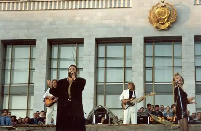 20. Михаил Шуфутинский выступает пред защитниками Белого дома, 1991 год