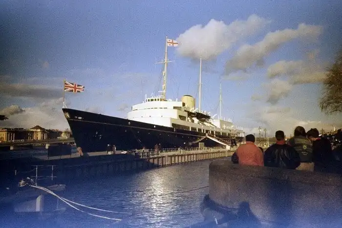 Яхта королевы Великобритании Елизаветы II во время визита в Санкт-Петербург в октябре 1994 года.