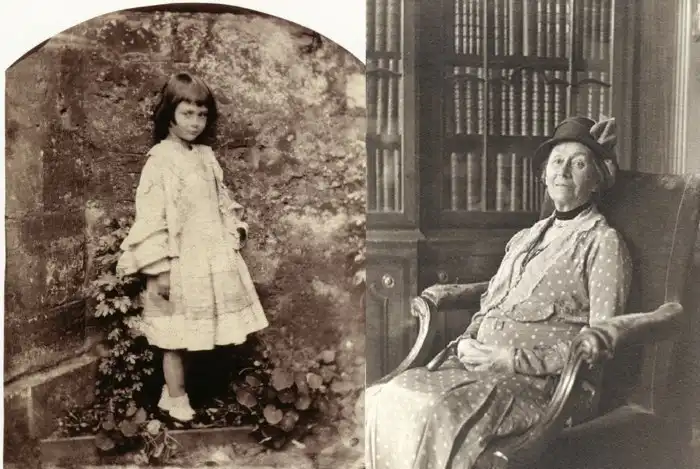Алиса Лидделл, прототип персонажа Алисы из “Алисы в стране чудес " в 1858 и 1932 годах