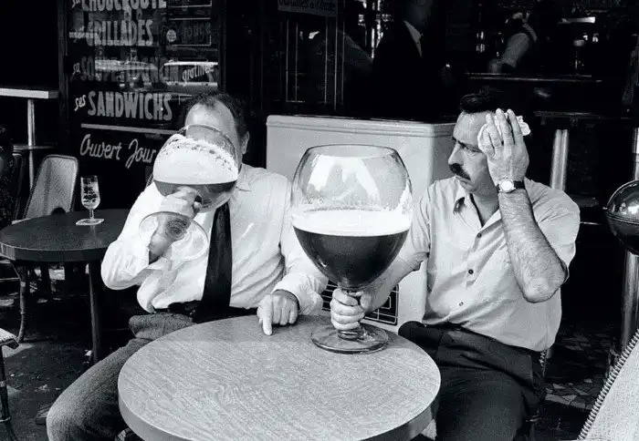 Мужчины пьют из “больших " стаканов во время жары в Париже, 1971 год