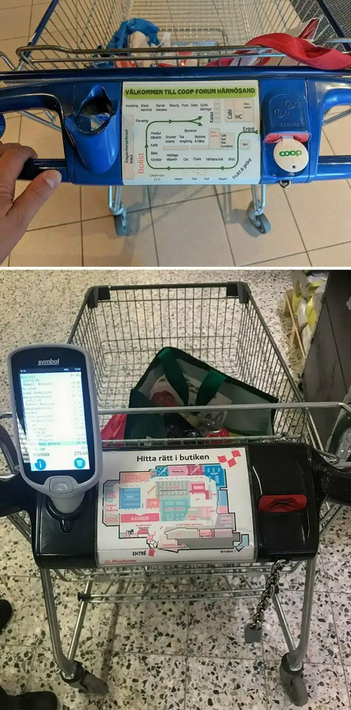 В шведских супермаркетах на тележках для продуктов есть карта магазина