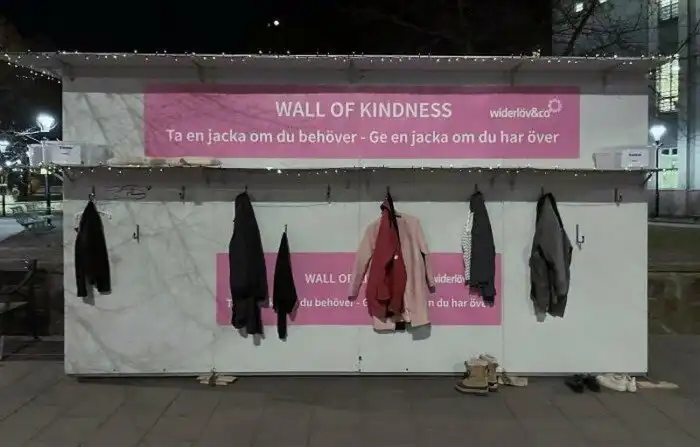 «Стена доброты» в Стокгольме, где люди могут брать одежду и оставлять, если она им не нужна