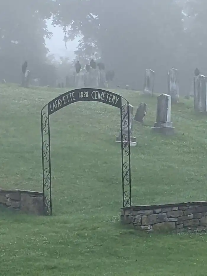 7. "Американские чёрные грифы на надгробиях туманным утром"