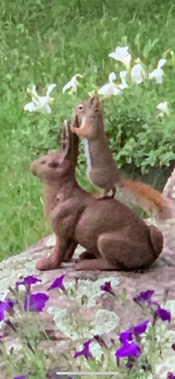 2. "Папа косил газон и ему на ногу забрался бельчонок. Успели сфотографировать!"
