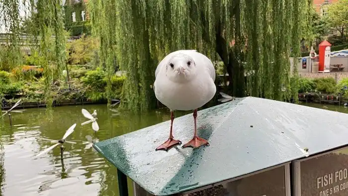 6. "Снимок делала не я. Потому что я - там женщина на берегу, которая кормит доисторическую чайку"