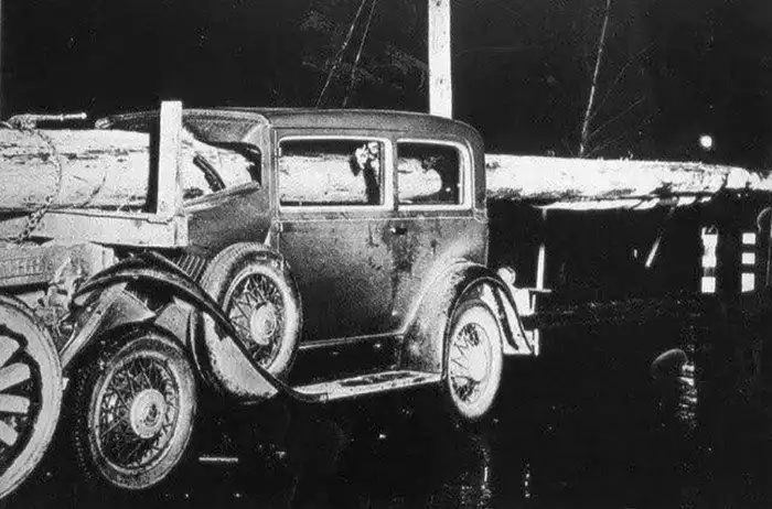 27. Авария с участием лесовоза, бревно с которого буквально пронзило легковой автомобиль, Нью-Йорк, 1929 год