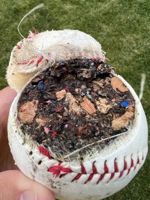 Случайно разрезал газонокосилкой дешёвый детский бейсбольный мяч