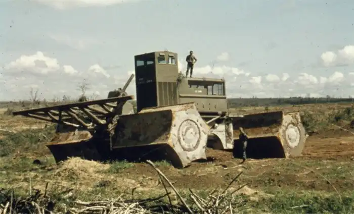 25. Уникальная 95-тонная «тактическая плавающая дробилка» ТТС (Transphibian Tactical Crusher) или «ЛеТроКрашер» (LeTro-Crusher) для проделывания проходов американским войскам в джунглях Вьетнама, построенная в 1967 г. в двух экземплярах