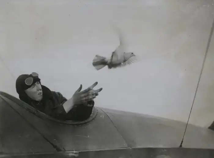 28. Пилот британского гидросамолета отправляет срочное донесение голубиной почтой. ПМВ, 1914-18 гг.