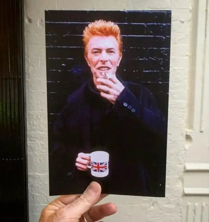 29. Дэвид Боуи перед рестораном Tea & Sympathy в Нью-Йорке, 10 января 1997 года. Фото Кевина Камминса
