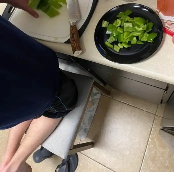 "Когда устал весь день стоять на ногах, а ужин готовить надо - я подставляю стул под колени, чтобы ноги не так нагружались. Помогает!"
