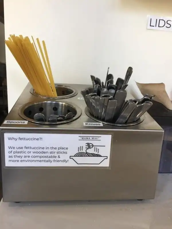 Кафе использует пасту феттучини вместо деревянных палочек, чтобы мешать кофе