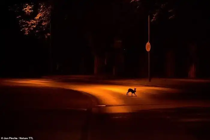 Победителем в категории «Городская дикая природа» стал снимок зайца в немецком городе Кассель, сделанный местным фотографом Яном Пьехой. «В дневное время это место на окраине заполнено людьми, занятыми своими повседневными делами. Но ночью здесь свободно гуляют животные, которые выходят поиграть под уличными фонарями», — говорит фотограф.