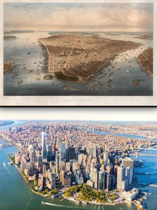 Манхэттен в 1851 и сегодня