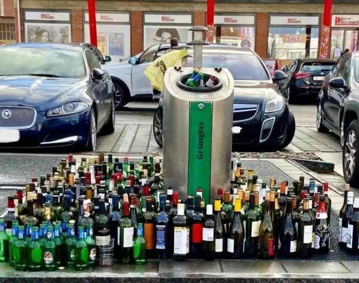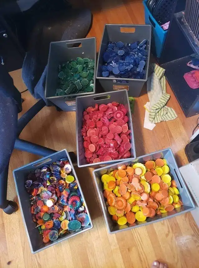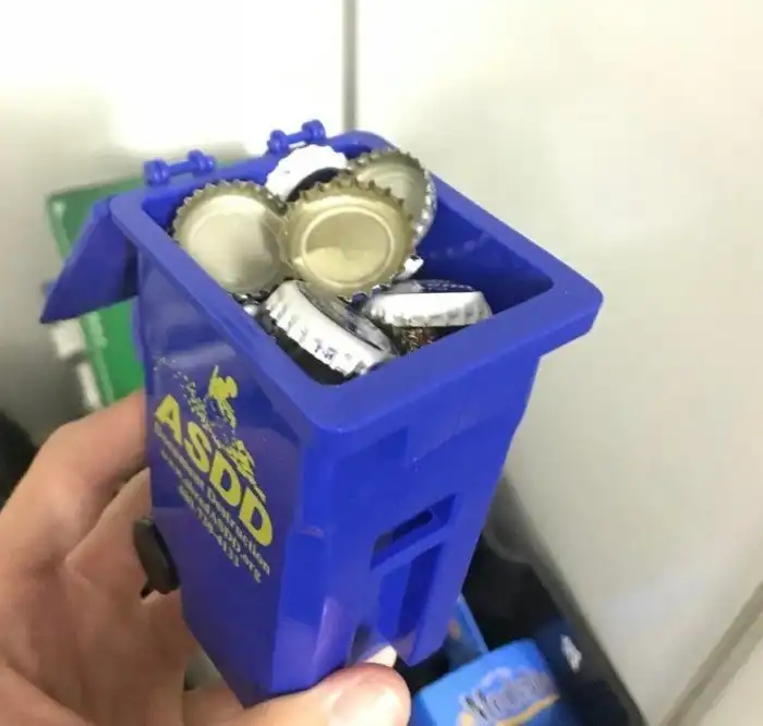 Пошёл на вечеринку, а там стоял большой контейнер для бутылок и такой же маленький для крышек.