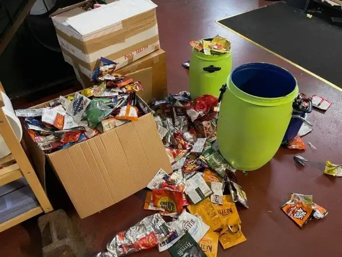 20 кг пакетов от чипсов, которые были собраны всем дружным коллективом на работе