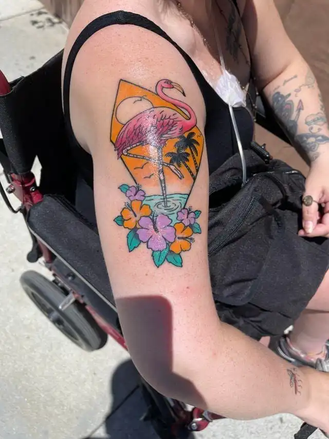 В прошлом году я потеряла ногу, а сегодня сделала татуировку в виде фламинго, так как мы с ним стоим на одной ноге