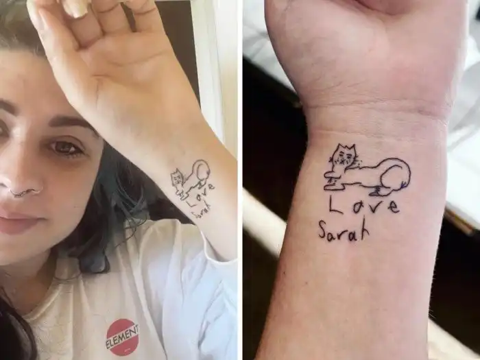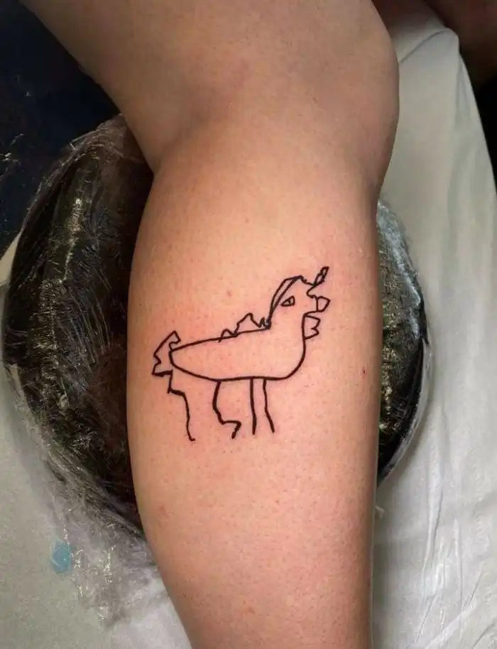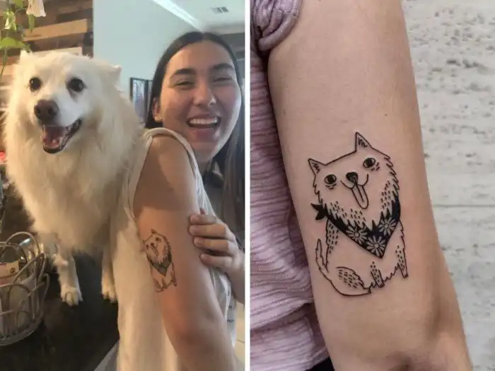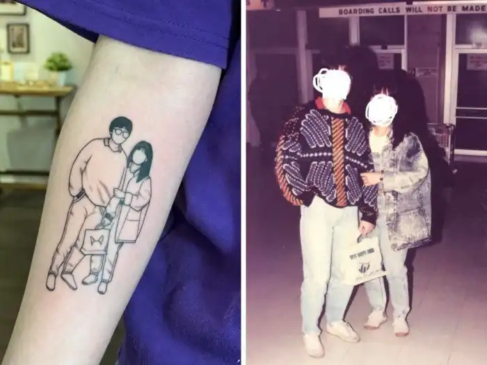 Рисунок посвящён фотографии родителей в молодости, а ещё на там есть небольшое камео собаки обладательницы тату.