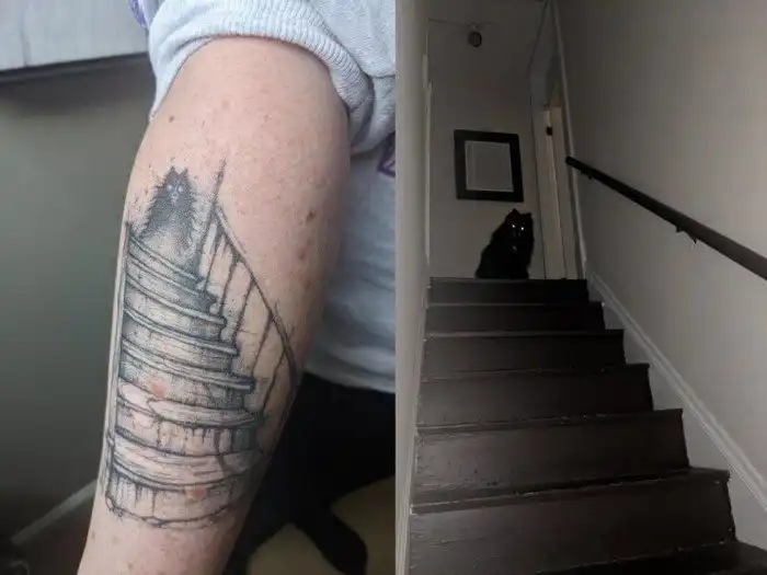 Автор рассказал о смысле этого тату. Во-первых, он любит котов, а во-вторых, это точка с запятой, которая показывает, что депрессия — это не остановка, а пауза, и жизнь после не неё не заканчивается.