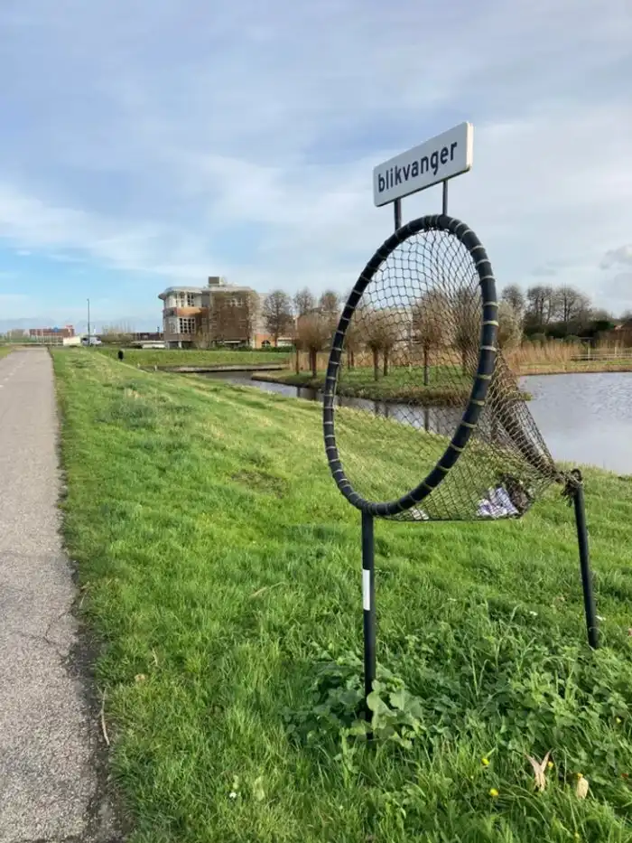 Сетки для мусора рядом с велодорожкой в Нидерландах - чтобы велосипедисты могли легко выкинуть мусор