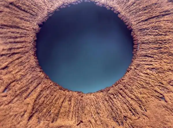 Человеческий глаз при экстремальном увеличении. На первый взгляд кажется, что на фотографии изображён природный пейзаж.